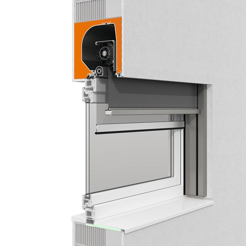 PUR ist toxikologisch unbedenklich, geruchsneutral sowie schimmel- und fäulnisfest. Die Innenschale ist höchst stabil und widerstandsfähig und verhindert so, dass Insekten oder Nagetiere den Schaumkörper zerstören. Zudem ist bei der Rechtsroller-Variante ein Insektenschutzgitter im Kasten integrierbar – auch nachträglich. Eine integrierte Glas-Absturzsicherung ist hier optional ebenfalls verfügbar.